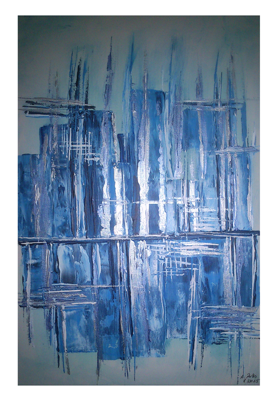 084 Rechtecke in BlauSilber 16. August 20159. Dezember 2015 | Angela Größe: 40 x 60 cm Acrylmalerei und Materialcollagen auf Leinwand Pastose Rechtecke in Blautönen und Silber Teilen mit: Auf X teilen (Wird in neuem Fenster geöffnet) X Auf Facebook teilen (Wird in neuem Fenster geöffnet) Facebook Gefällt mir Wird geladen … Ähnliche Beiträge