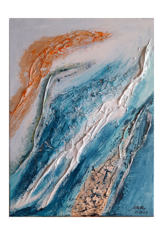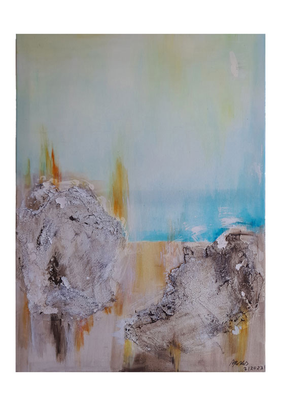 Abstrakte Acrylmalerei mit Materialeinsatz