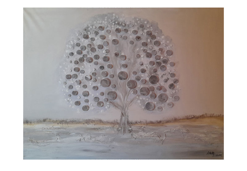271 Baum 27. April 202225. August 2022 | Angela Größe: 70 x 50 cm Acrylmalerei mit Materialeinsatz auf Leinwand