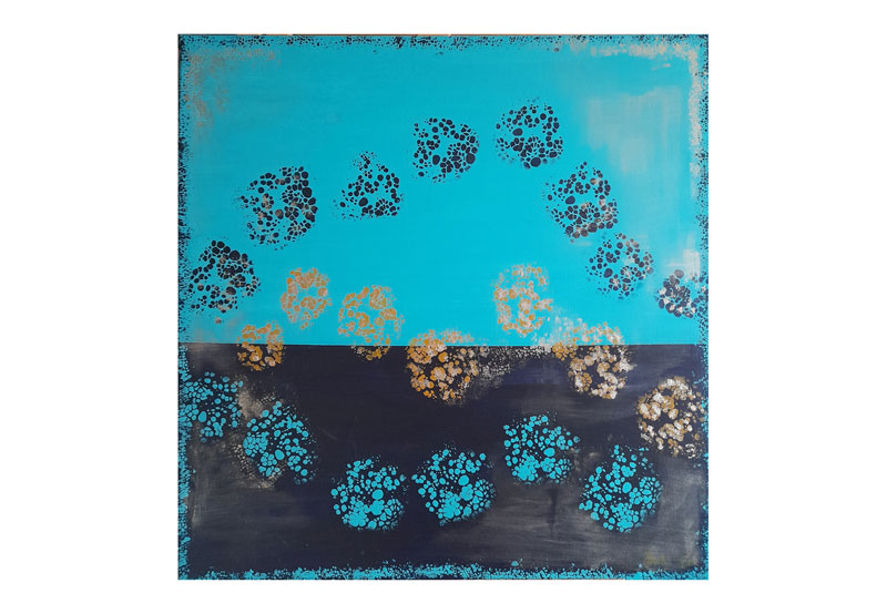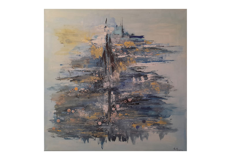276 Gelbblaue Streifen 20. Mai 202225. August 2022 | Angela Größe: 80 x 80 cm Acrylmalerei auf Leinwand