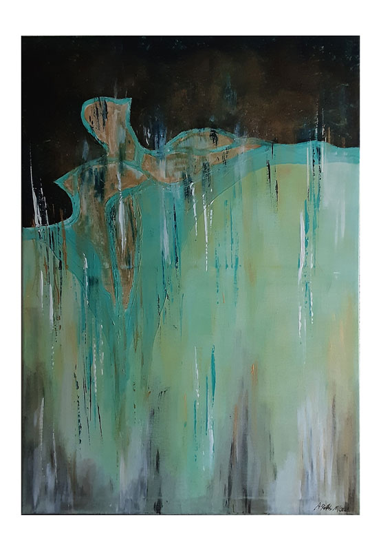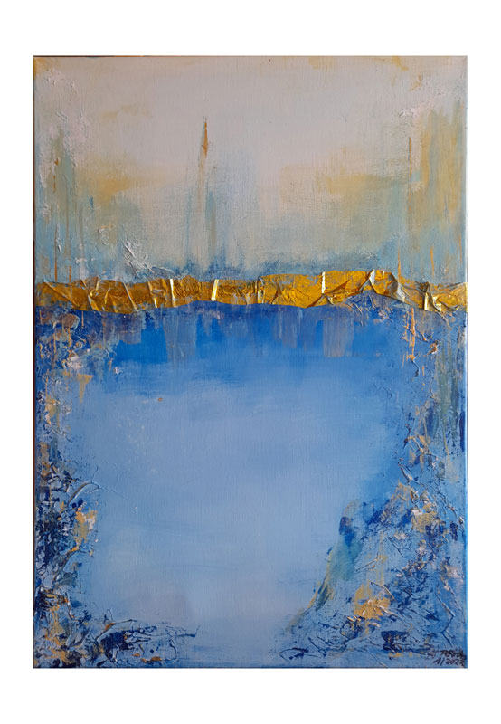 268 Sonniger See 12. April 202225. August 2022 | Angela Größe: 50 x 70 cm Acrylmalerei mit Materialeinsatz auf Leinwand