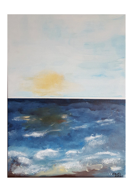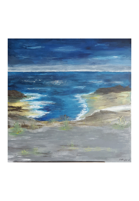 253 Küstenbild 15. September 202127. September 2021 | Angela Größe: 80 x 80 cm Acrylmalerei auf Leinwand