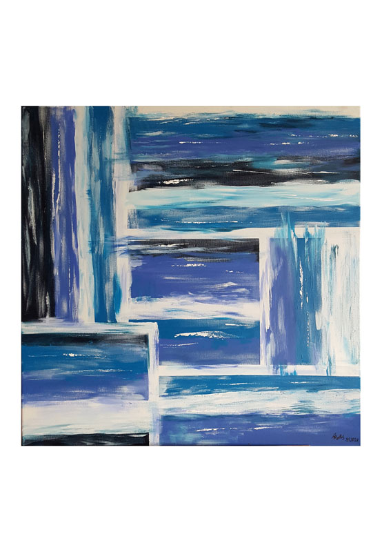 255 Blaue Streifen 7. Oktober 20217. Dezember 2021 | Angela Größe: 80 x 80 cm Acrylmalerei auf Leinwand