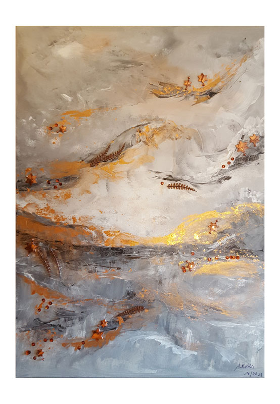 258 Kupferne Lichtblicke 12. Oktober 20217. Dezember 2021 | Angela Größe: 50 x 70 cm Acrylmalerei mit Materialeinsatz auf Leinwand