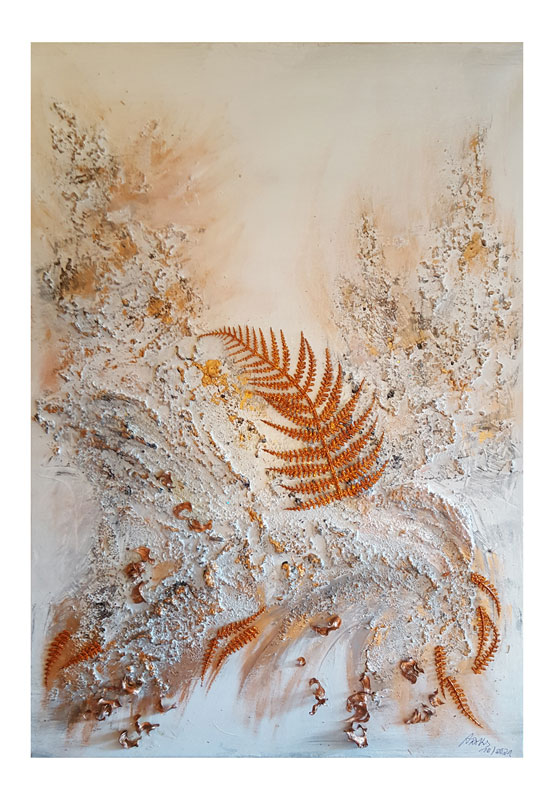 259 Goldener Herbst 12. Oktober 20217. Dezember 2021 | Angela Größe: 50 x 70 cm Acrylmalerei mit Materialeinsatz auf Leinwand
