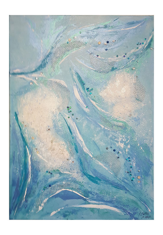 260 Helle Blicke 3. November 20217. Dezember 2021 | Angela Größe: 50 x 70 cm Acrylmalerei mit Materialeinsatz auf Leinwand