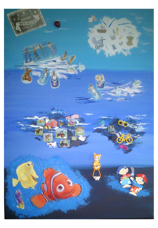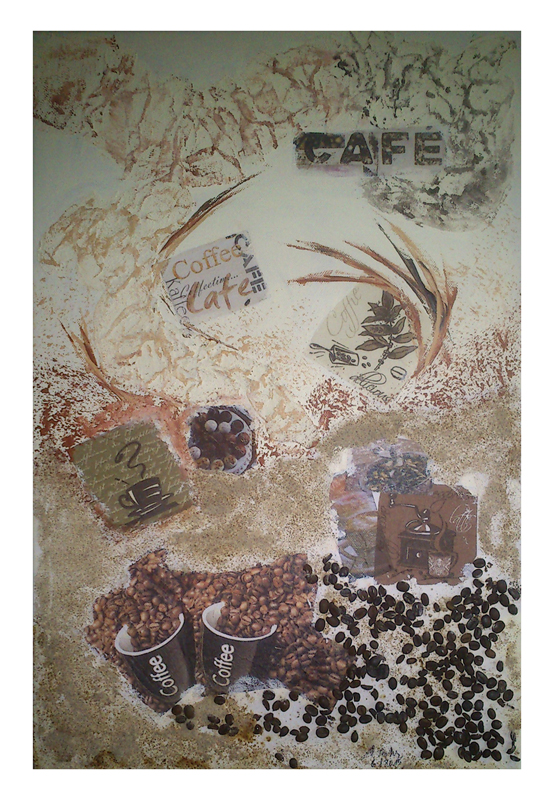 Collage mit Kaffeebohnen, Motiven und Netzen
