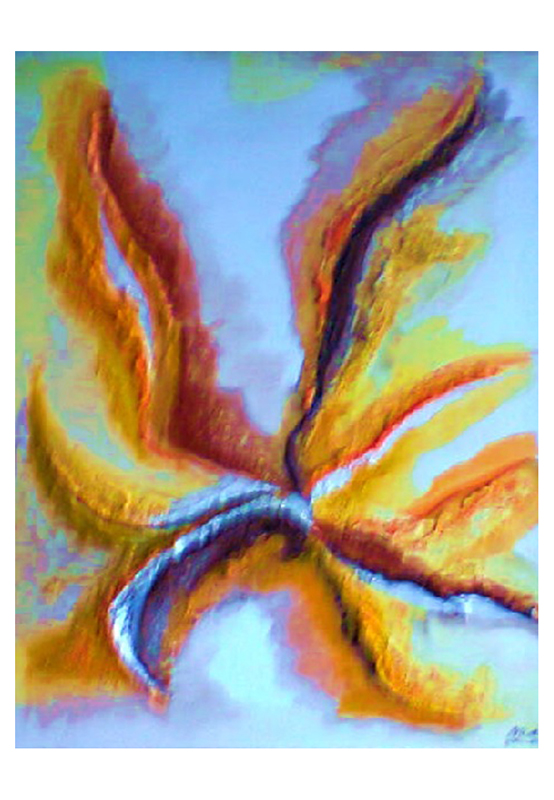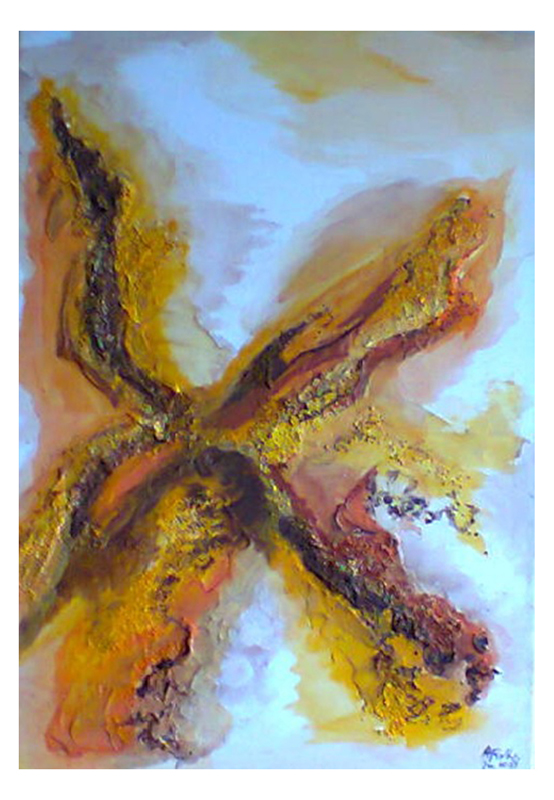 013 Gelbstern2 7. November 20149. Dezember 2015 | Angela Größe: 50 x 70 cm Acrylmalerei und Materialcollagen auf Leinwand Variation eines Gelbsterns mit verstärkter Astbetonung und Strukturpaste